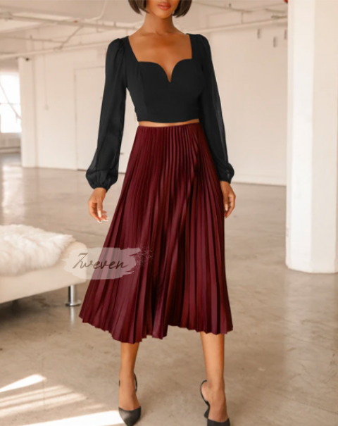 A cropped, princess-seamed bodice has this glamorous statement-making top that boasts a sweetheart neckline with a secret V-bar for protection. The open back is cinched with long chiffon links and a single button closure. Thanks to gathered shoulders and elasticised cuffs, sheer long sleeves provide a chic puffed appearance.